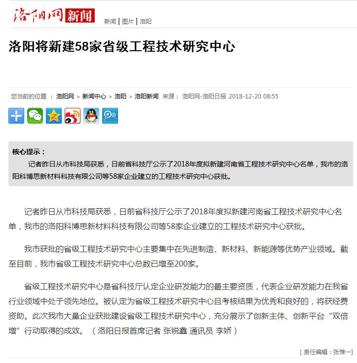 日前,省科技局公示2018年度擬建河南省工程技術中心名單,洛陽科博思新材料科技有限公司榜上有名。省級工程技術研究中心是省科技廳認定企業研發能力的最主要資質,代表企業研發能力在我省行業領域中處于領先地位。科博思此次獲批省級工程技術研究中心,是省科技廳對科博思科研實力和科研平臺的肯定。